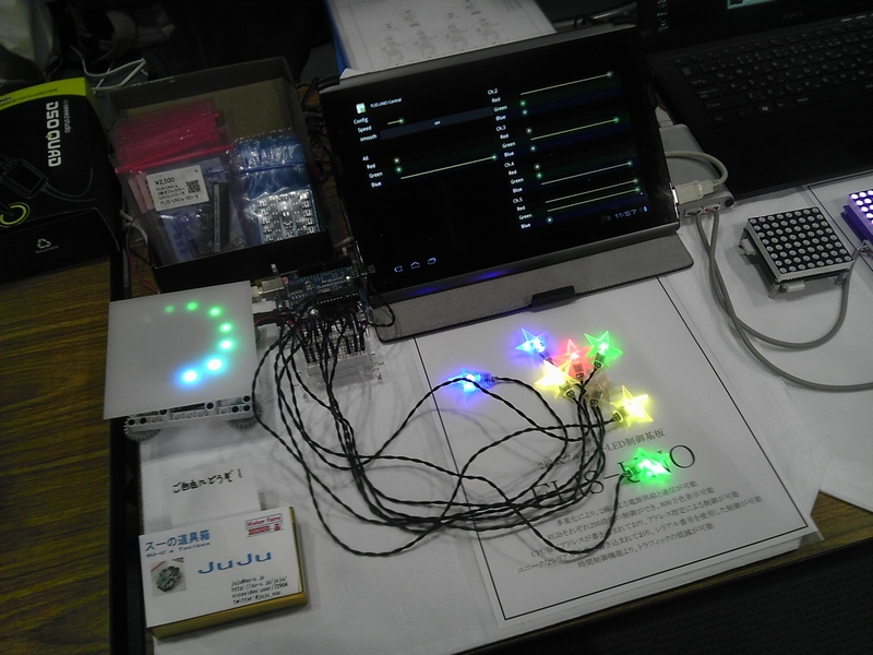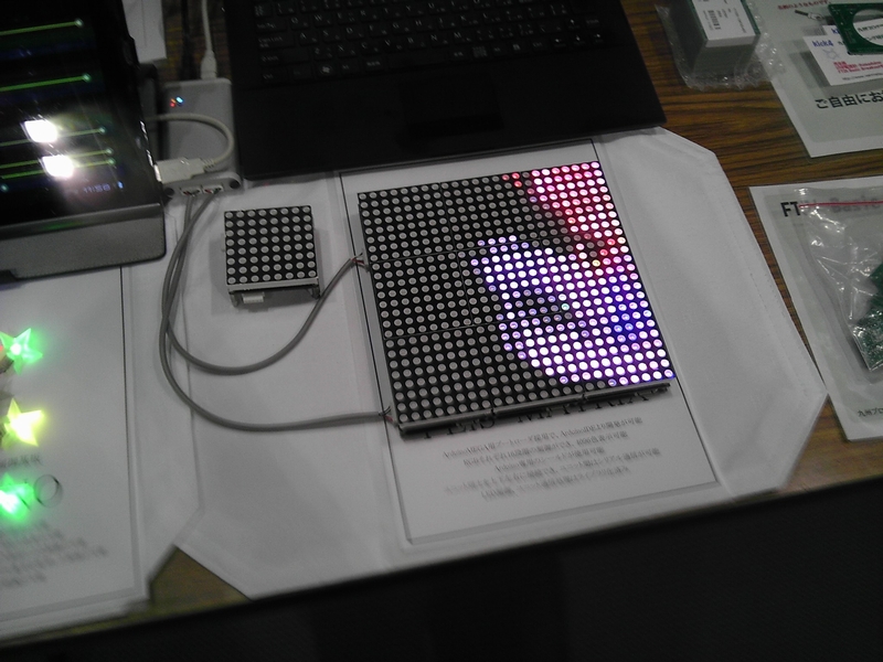 ついにリア充になったJuJuさんの、「FLIS-UNO/e」を使った「ウェルカムボード」と、「FLIS-MATRIX」の動画デモ。ウェルカムボードのモジュール90個半田付けは心が折れかけたとか。ウェルカムボードの中のイラストは奥さんによるもの。